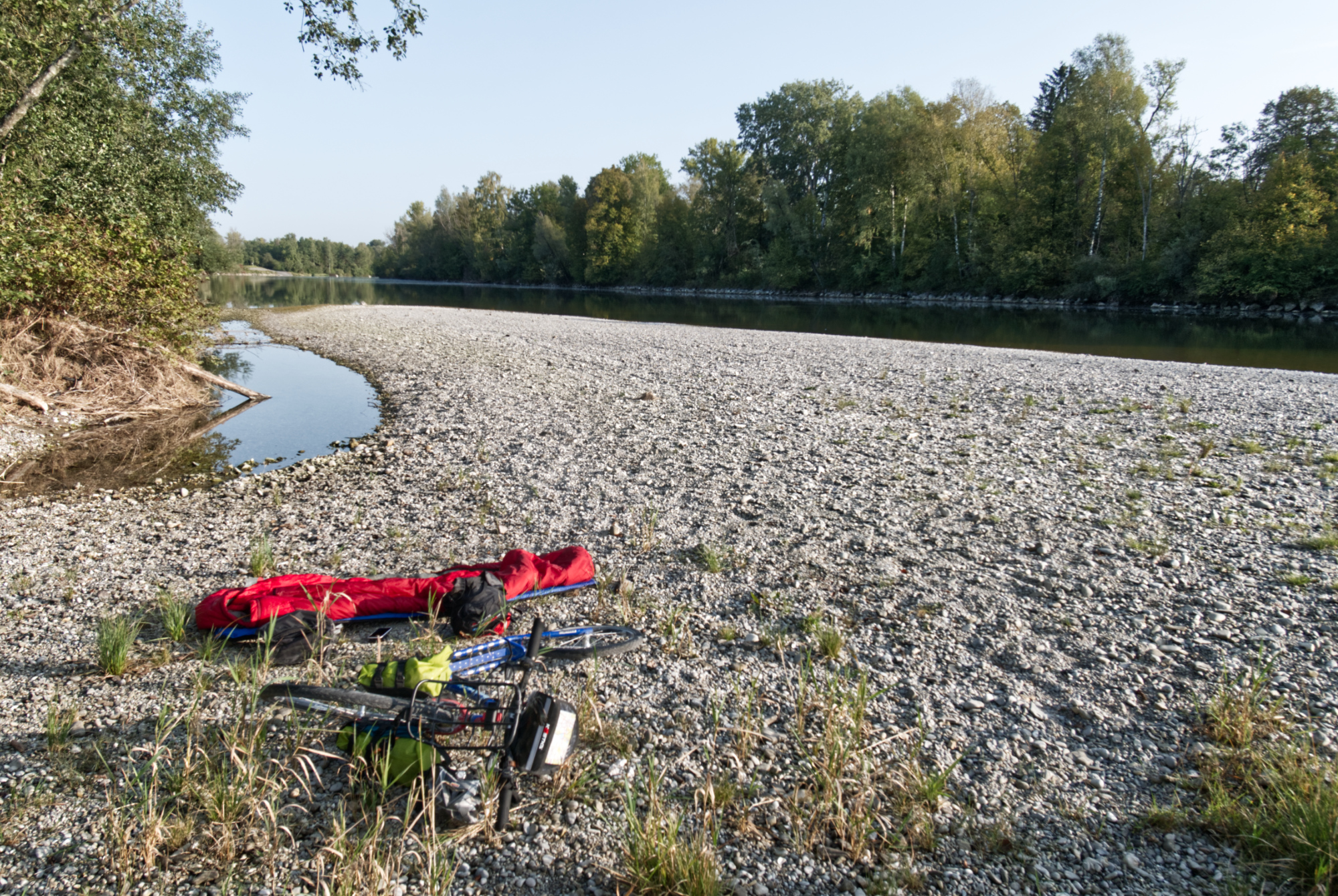 Und natürlich wieder mit kompletter Ausrüstung zum Übernachten. Ich will ja flexibel sein. (In irgendwelchen Herbergen zu übernachten kommt eigentlich gar nicht in Frage – das fände ich irgendwie super langweilig.)