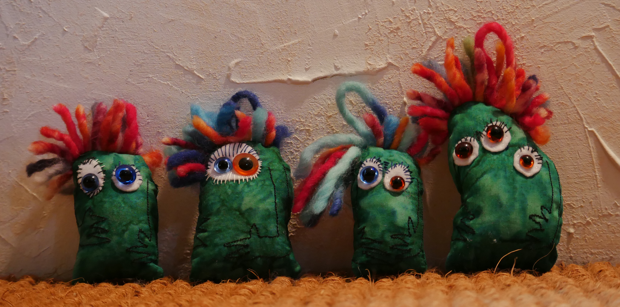 I began sewing cuddle monsters fifteen years ago as a Christmas present series for family and friends. Since then I designed and produced more than twenty cuddle monsters.