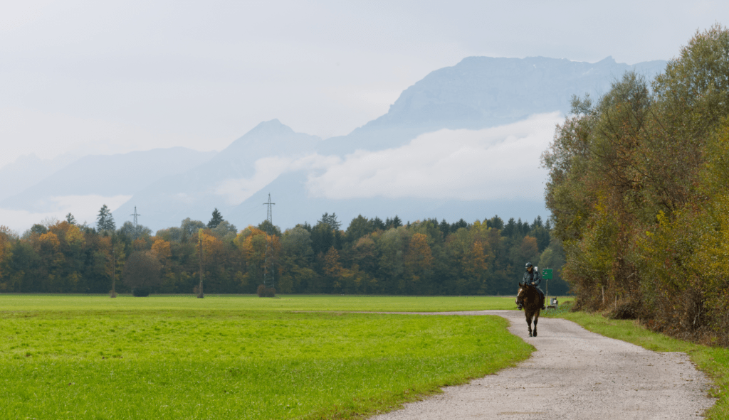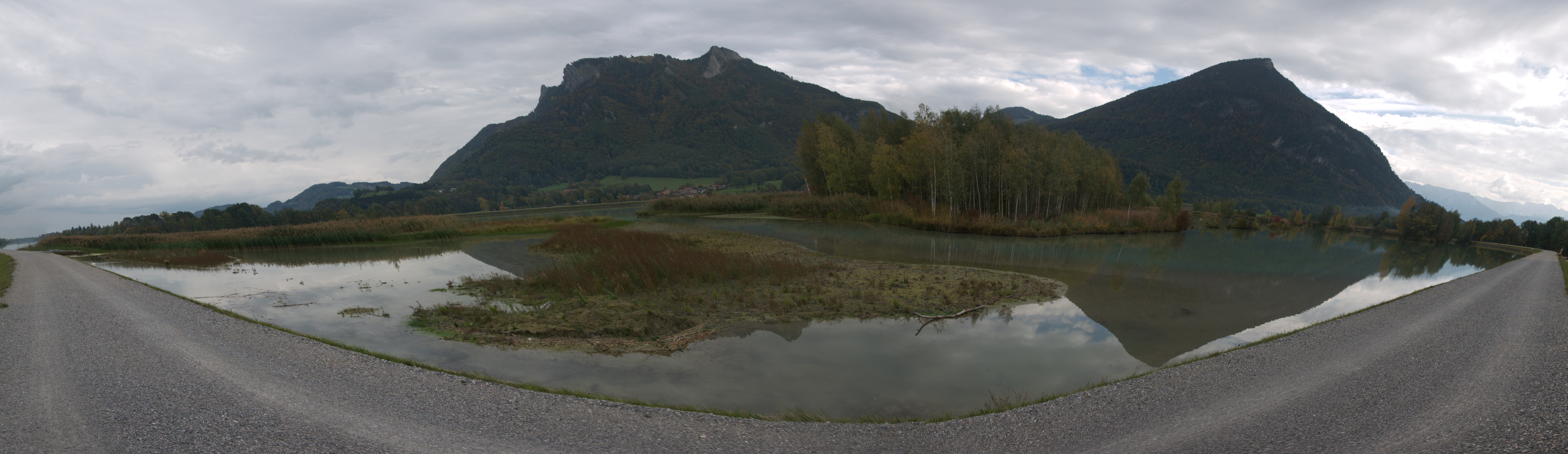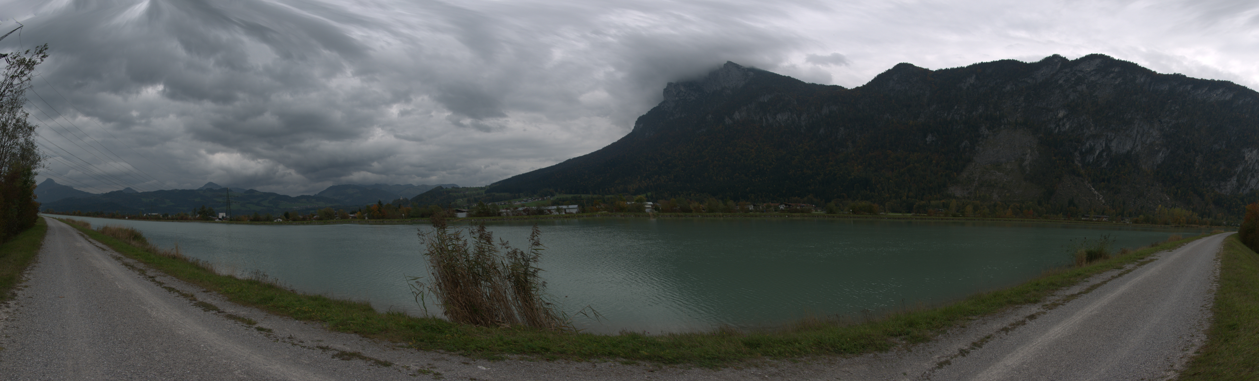 Thirty kilometers before Rosenheim I reached the river Inn. Once you reached the Inn, it is super easy, to follow the gravel road along its shore for the next 200 kilometers. I had one and a half days of foggy weather that made it impossible to see the Alps in the distance. This was one of my first impressions of the Inn-Cycleway on the evening.The Alps suddenly came out of the foggy wheather, when I was quite close and they were all the more mighty as a sight then. I always admire these mountains that suddenly spring up like a three dimensional wall in the otherwise flat land*. (Quick reference: * = not to be confused with flatland. However, the Alps might be equally unimaginably in their additional height dimension for beings of such flat lands as Northern Germany. 😉 )In general I leave panoramas in higher resolution here in the blog. So if you click on it, you may look at them in much bigger sizes. For most other pictures I just use 2000 pixels as the widest edge, for panoramas I use 3000, 4000 or 5000 – just that you can enjoy them closer.I like the winding path and the jogger just came in the right moment to emphasize it a bit. Of the twenty pictures taken, also with a passing cyclist, this here had the best perspective with another person. It is always a bit more difficult if other people just do what they do and move and you want to have the best shot. 😉Kind of the same as the last one, but taken many miles apart. Horse riders are always cool in pictures. Talking about animals, I found this sheep race intriguingly funny.Going from one funny face to the next. It happened that when I crossed this place that it was Sunday in October and that THE parachuting club of Tyrol had one of their three yearly jumping days and festivities beside my path. I went over for some pictures, some cake, a chat and even got a parachuting stamp in my pilgrim stamp booklet. If this vertical panorama is not shown in size width, if you click on it it should be in full size anyway. Some of the towns maybe 50km into the Inn valley in Austria.I visited a small chapel here and discovered that the passage provided a nice light situation. I also had a chat with some people there about the kickbiking and my journey. On average I have two such conversations every day. 🙂 Some people are just in awe, some might get inspired – the first one is funny to watch, the second is a thing I really like to do.Gosh, what a massive panorama this was. It took probably 20 pictures. Often I just take one or two pictures in churches, but here a really wide and high panorama was nice to represent the church decently.Outside of a Karmelite church, which is now a museum, these nicely colored plants forced me to take an autumn picture.A particularly nice camping site here. Right into the slope of some tiny forest bit.The camp on the last picture was on the right edge of this shot. Roughly behind the odd darker spot there that looks like a snake that has eaten a small elephant. I found it really difficult to find good sleeping spots in the Inn valley! Mainly because this is the main truck route from Italy to Germany and the highway is always in hearing distance. The only question is how terribly close it should be this night. At this spot I already did not care anymore that it was quite loud, because I got used to from the three nights before. Ignorance is bliss and I was then happy to enjoy the scenery, sand and water.Another camping ground directly beside the Inn. Very nicely looking location – within highway hearing distance of course.