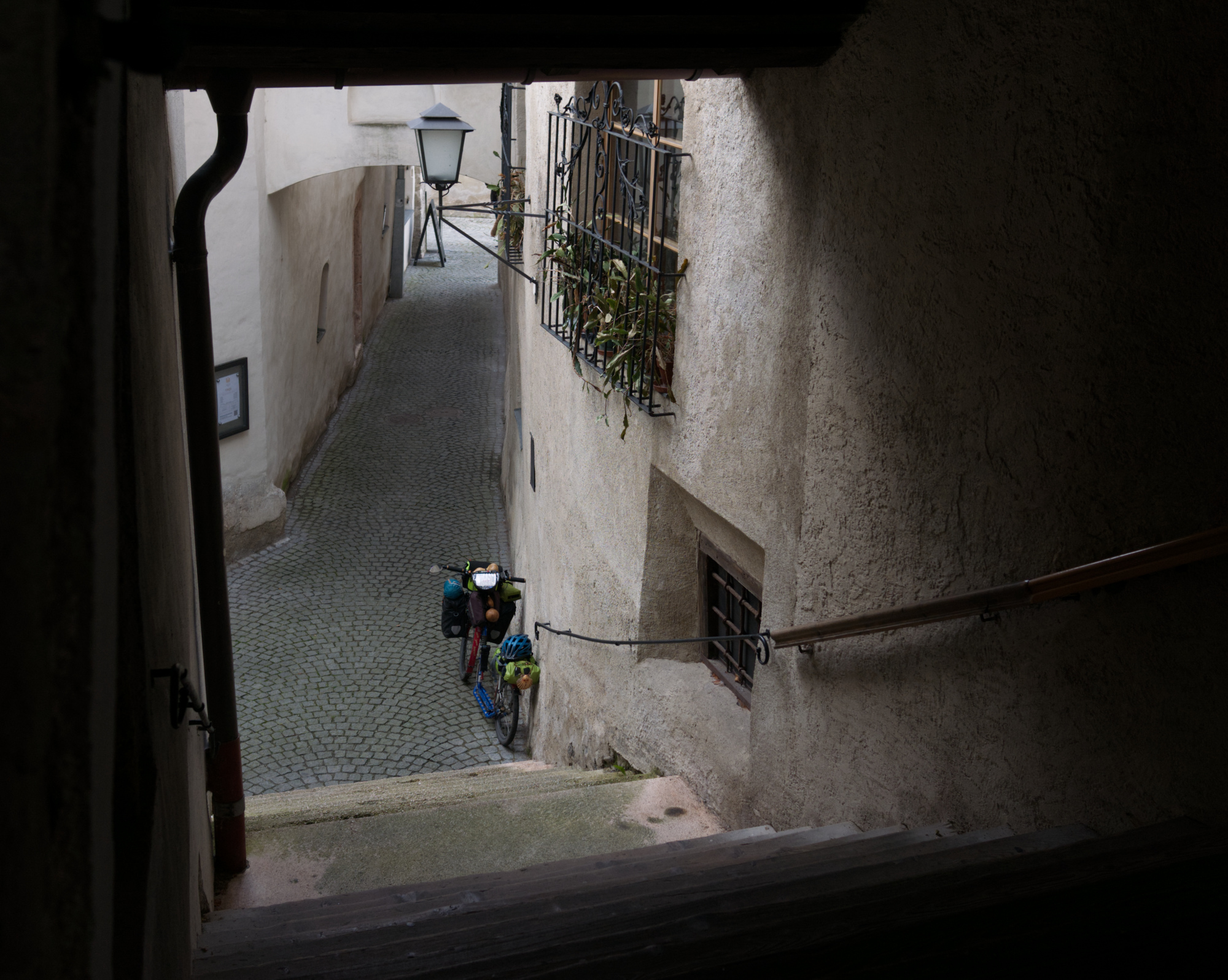 Obviously, the Alps are not exactly on the shortest route from Franconia to Spain, but neither is it a huge detour. Maybe it adds 10 extra travelling days to maybe 140 days in total. On the other hand it is both a nice adventure and a nice story. I mean, how many people do you know, who crossed the Alps on a fully loaded travelling kickbike? See? I know exactly one, and he sits in front of my computer. 😉